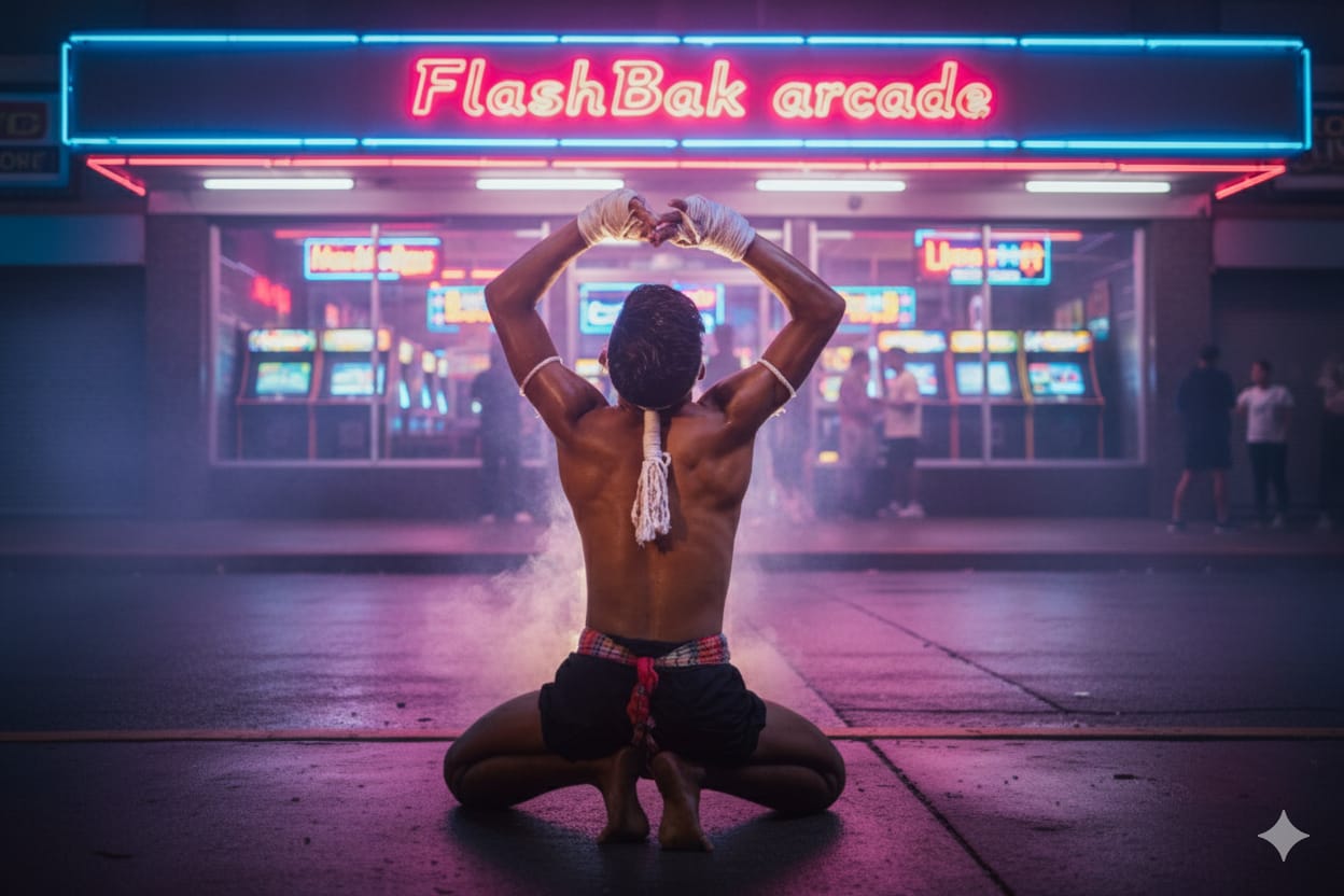FlashBak was founded by Richard Goode — a lifelong fight fan, creative thinker, and lover of all things retro. Growing up in the 80s and 90s on a steady diet of classic action films, neon arcades, and old-school fight nights, Richard wanted to bring that nostalgia back into today’s fightwear scene.